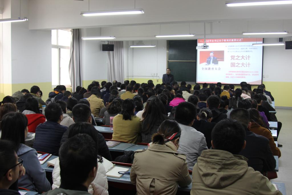 根据学校“不忘初心、牢记使命”主题教育总体部署安排,11月8日下午,校党委书记陈平社在教学南楼207教室为全校教工党员上了一堂生动精彩的主题教育专题党课。澳门pg官方电子平台全体教工党员参加了学习。