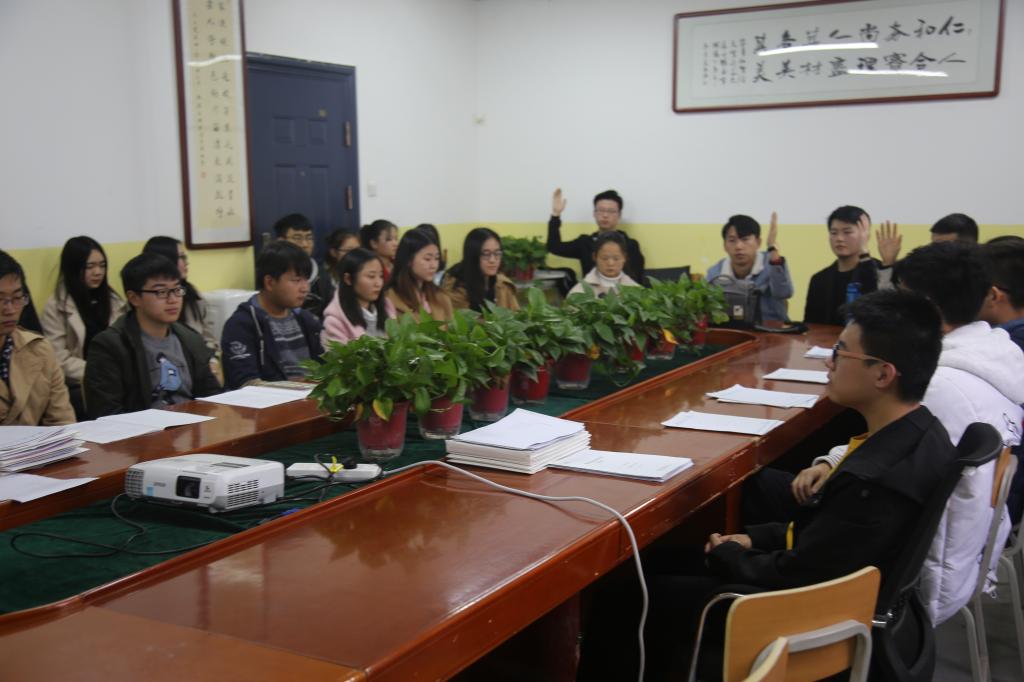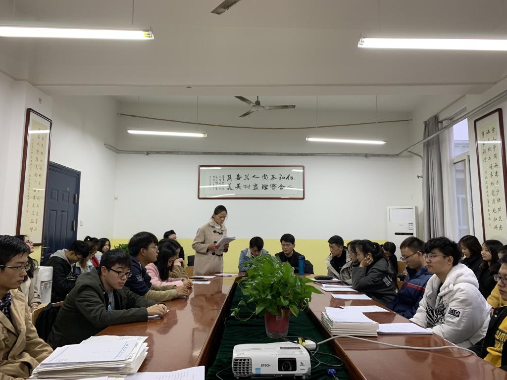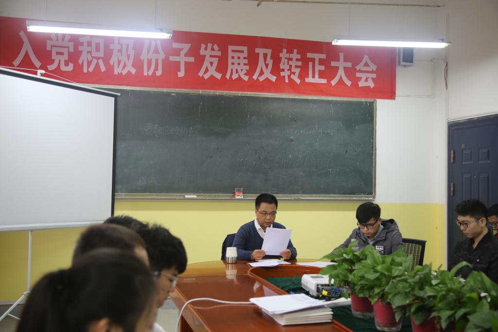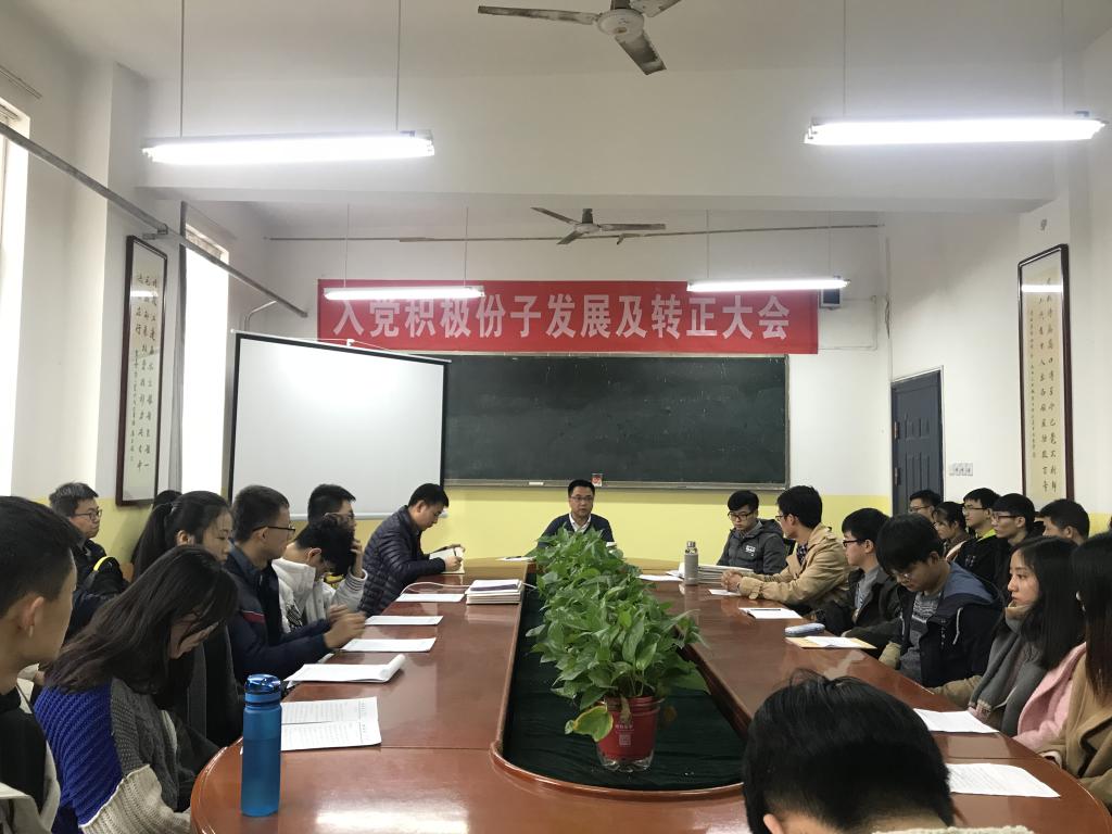 2018年11月30日,澳门pg官方电子平台党总支学生党支部于教学南楼228召开入党积极分子发展及转正大会,学生党支部书记曹建波老师、辅导员杨陈东老师出席此次大会,会议由曹建波老师主持,澳门pg官方电子平台学生党员、预备党员、积极分子等共有50余学生参加。