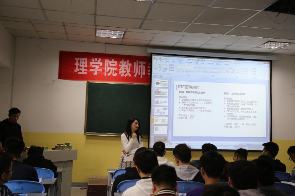 10月17日在教学南楼澳门pg官方电子平台举办了专场招聘会,会议由澳门pg官方电子平台学生党支部书记曹建波主持,全体毕业生参加了此次招聘会。本次招聘会分早上和下午两场,两家企业分别是新蛋科技和博彦科技测试中心。