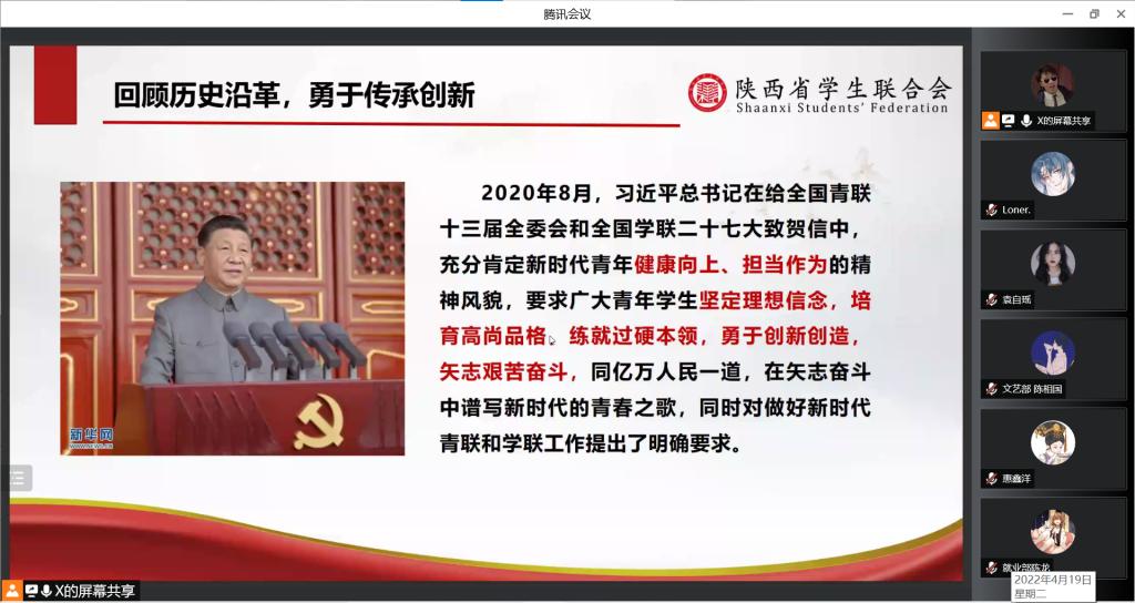 2022年4月19日晚19点30分,澳门pg官方电子平台于线上召开2022年春季学期学生骨干集体培训会议,澳门pg官方电子平台团总支书记、辅导员张岩和全体团学干部参加了本次会议,会议由许高博主持。
