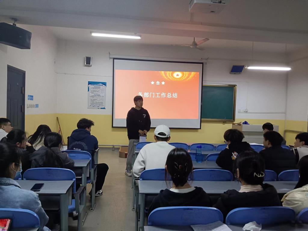 会议伊始,张岩对上一学期团学组织的各项工作做出简单总结,肯定了各个部门取得的优异成绩,对部门开展的特色活动和创新节目提出表扬,同时指出需要改进的地方。学生会主席许高博对上一学年主席团的整体工作做出总结,提出上一学年工作的整体收获以及存在的不足,并表明在本学期,会加强各个部门之间的联结,不断协调和强化部门的能力,发挥部门的最优水平。随后,各个部门负责人对上一学期部门工作进行总结,并对新学期的工作安排作出说明。最后,张岩老师对本学期的工作作出具体安排,强调在新的一年中各部门要端正工作态度,切实履行各项工作职责,希望各个部门能够紧密结合,相互配合,共同发展,在新的学期继续保持积极进取的精神风貌。