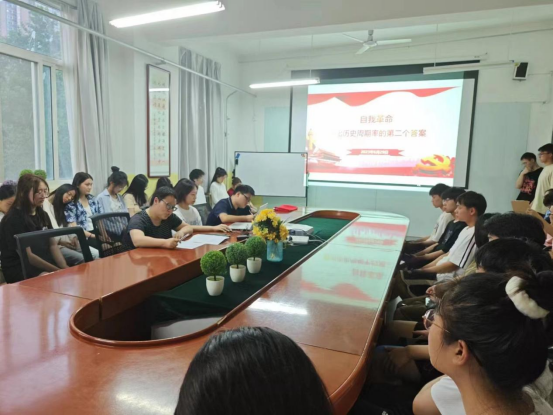为推动学习贯彻习近平新时代中国特色社会主义思想主题教育走深走实,6月29日晚澳门pg官方电子平台学生党支部书记李扬为全体学生党员讲授党课“自我革命-跳出历史周期率的第二个答案”。