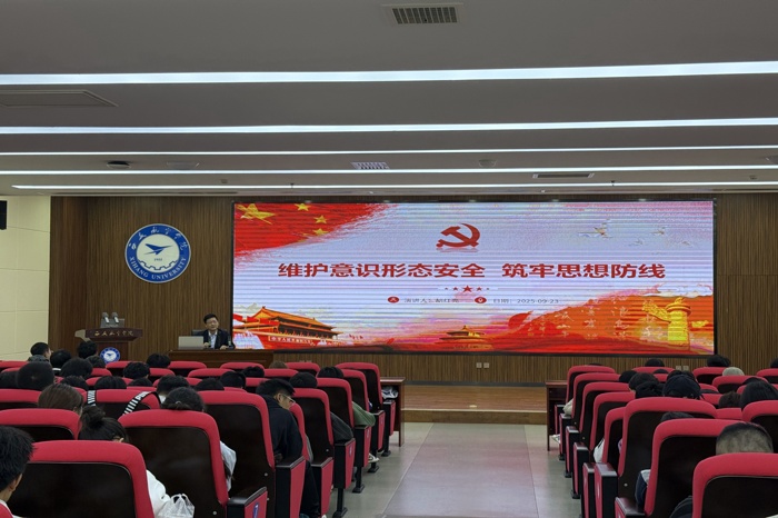 9月23日到26日,澳门pg官方电子平台关工委分别在莲湖校区图书馆五楼报告厅和教学南楼207教室为2025级新生开展理想信念教育教育。党总支书记、关工委主任胡红亮,院长李小光,副院长、关工委副主任韩慧蓉亲自授课,为新生扣好大学“第一粒扣子”,引导青年学子树立坚定信念。