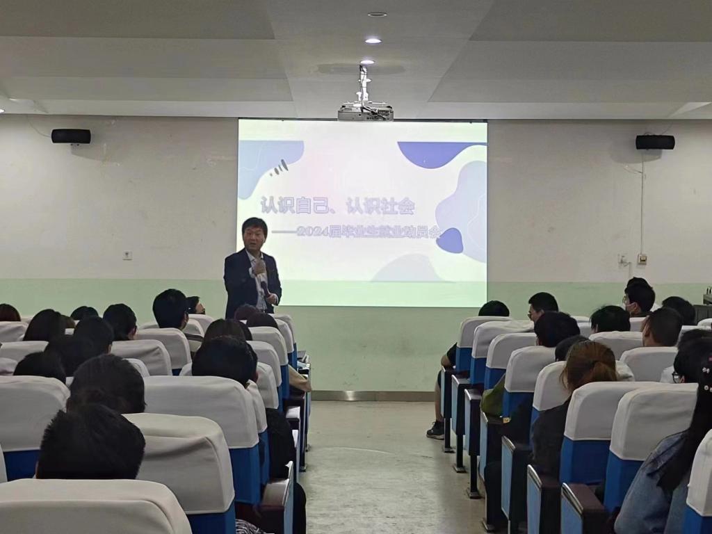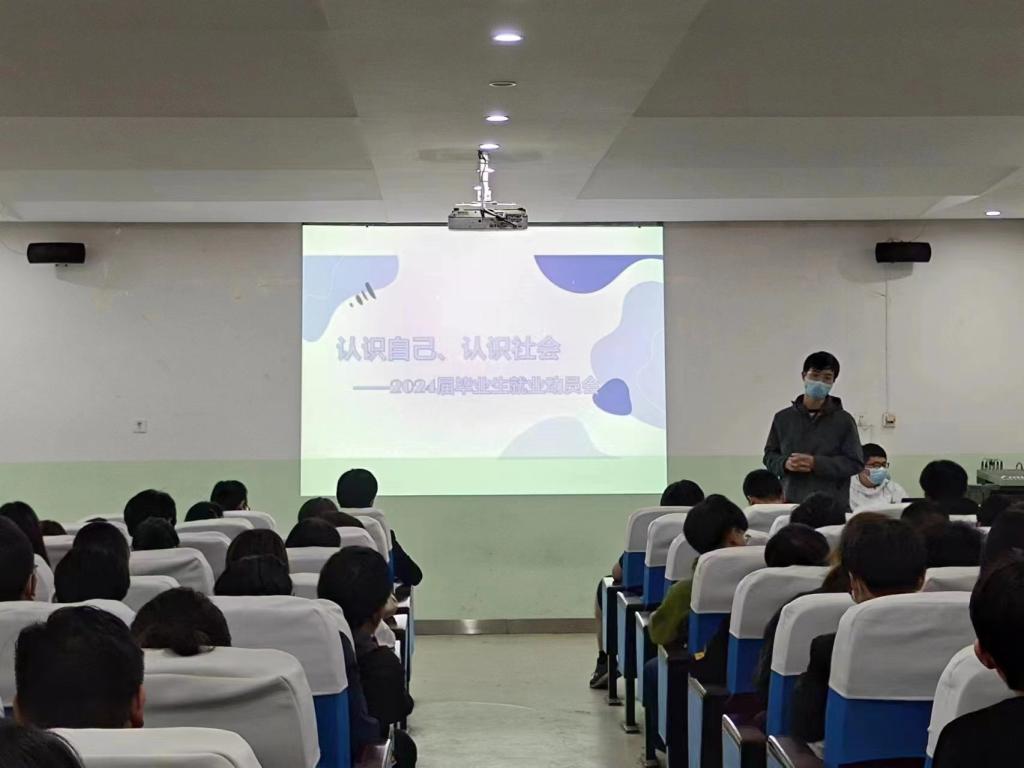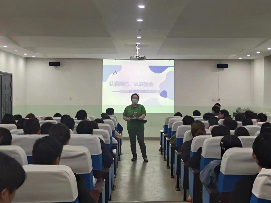 为持续做好澳门pg毕业生就业工作,帮助大三学生做好职业规划,明确学习目标,6月16日,澳门pg官方电子平台在莲湖校区南楼108教室召开了“认识自己、认识社会”2024届毕业生就业动员会。澳门pg官方电子平台党总支书记胡红亮、学生管理科科长李扬、年级辅导员张岩及大三全体学生参加。
