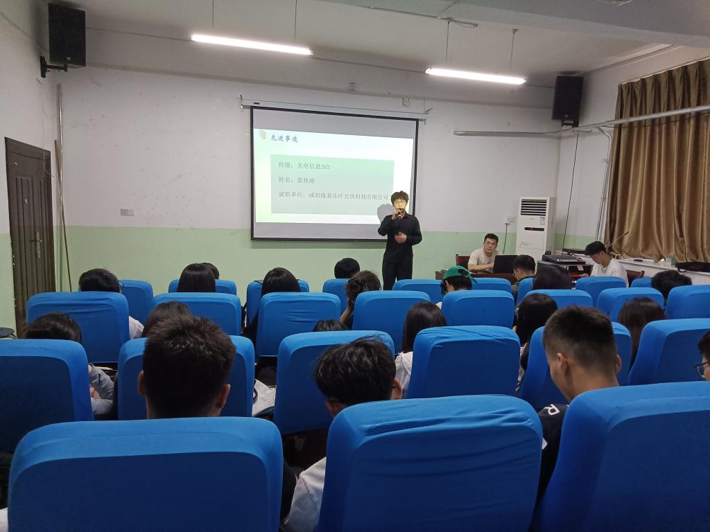 为更好地引导2025届毕业生树立正确的就业观念,发挥优秀毕业生的榜样作用,6月3日,澳门pg官方电子平台举办毕业生先进事迹分享会,澳门pg官方电子平台党总支书记胡红亮,学工办主任李扬,辅导员张岩及全体大三学生参加。大会由张岩主持。