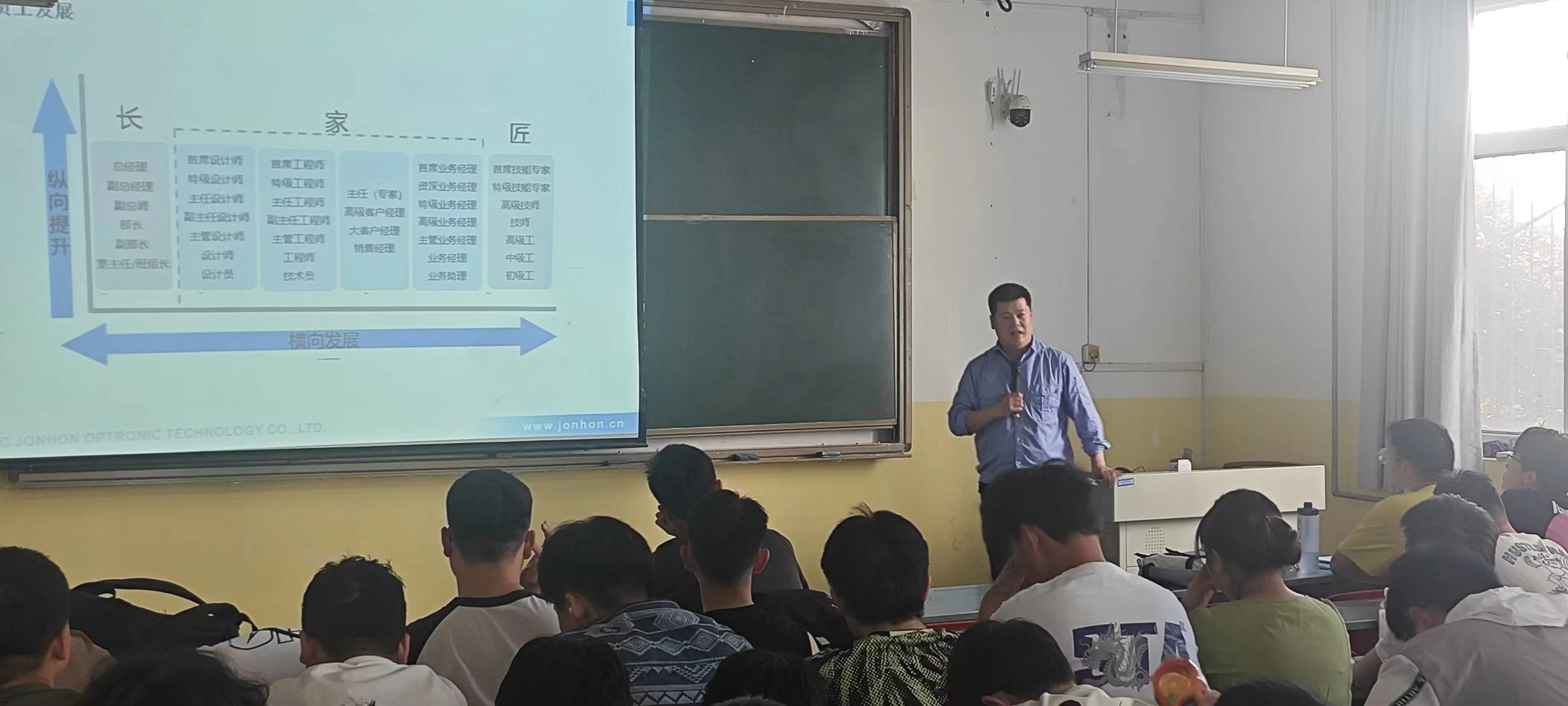 为进一步加强学生对专业的认识,明确就业方向,澳门pg官方电子平台于5月10日、15日分别教学南楼208教室和图书馆五楼报告厅举办企业宣讲会,邀请中航光电、三安光电、喜星电子、讯方技术和软通动力的负责人宣讲,澳门pg官方电子平台党总支书记胡红亮、学工办主任李扬、校企合作负责人曹建波、光电专业负责人王妙、信计专业教师陈国心、辅导员张岩和大三全体学生参加。