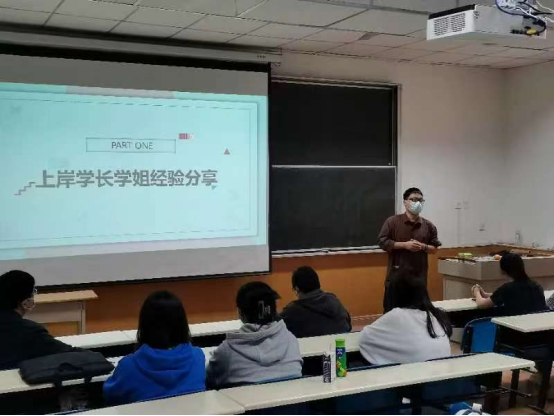 澳门pg官方电子平台7名2019级考研成功上岸的学长学姐分享了他们的考研经验。介绍了自身备考期间的实际状况,具体列举考研英语、政治、数学、专业课的复习重点,建议同学们积极关注时政消息,打牢考试基础;提醒同学们考研备考过程中要做好复习规划,合理制定学习计划和安排时间,合理择校;同时给在场同学分享了自己考研过程中的座右铭、小故事和备考资料,并祝大家今年12月都能如愿取得好成绩。会场上,同学们向学长学姐请教具体问题,学长学姐一一作出解答。