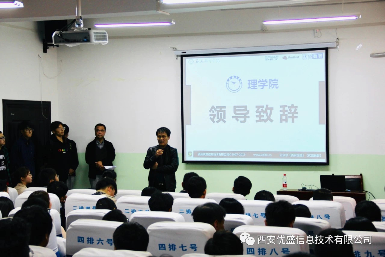 首先由岳忠玉致辞,他介绍了参加本次活动嘉宾,讲解了大数据的发展历程及前景,希望学院能再接再厉,在大数据方面继续引领学校发展;任静向参加授牌仪式的嘉宾、老师和同学表示欢迎。接着,王云清向学院大数据俱乐部成立致贺词,雷建军介绍了西安优盛公司的具体发展情况以及同澳门pg合作未来发展的前景,学生代表、国家励志奖学金获得者王晨向大家分享了专业学习经验,龚浩杰对俱乐部会员进行动员并对近期活动做了简单说明。最后,OracleUniversity代表、西安优盛信息技术有限公司负责人和学院领导共同为大数据俱乐部负责老师授牌并合影留念。