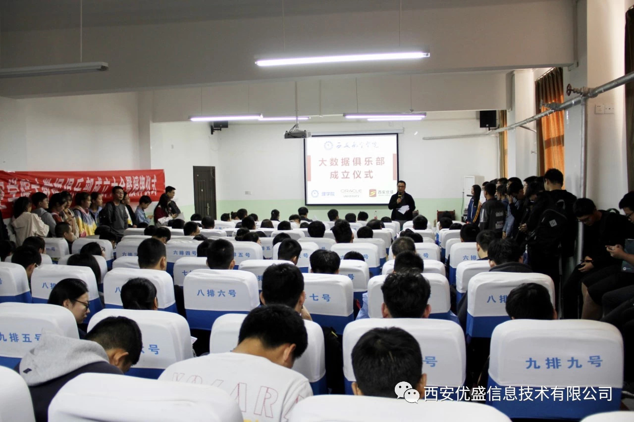 2019年10月17号下午4点,澳门pg官方电子平台在北楼447举行大数据俱乐部成立大会暨授牌仪式。参加会议的有澳门pg官方电子平台院长岳忠玉、副院长丁琦、计算机学院副院长任静、信息与计算工程专业负责人张惠玲、澳门pg官方电子平台校企合作委员会主任曹建波、OracleUniversity(中国)北方区经理王云清、西安优盛信息技术有限公司总经理雷建军、副总经理龚浩杰、培训认证主管王欢以及信息与计算工程专业的教师和学生。