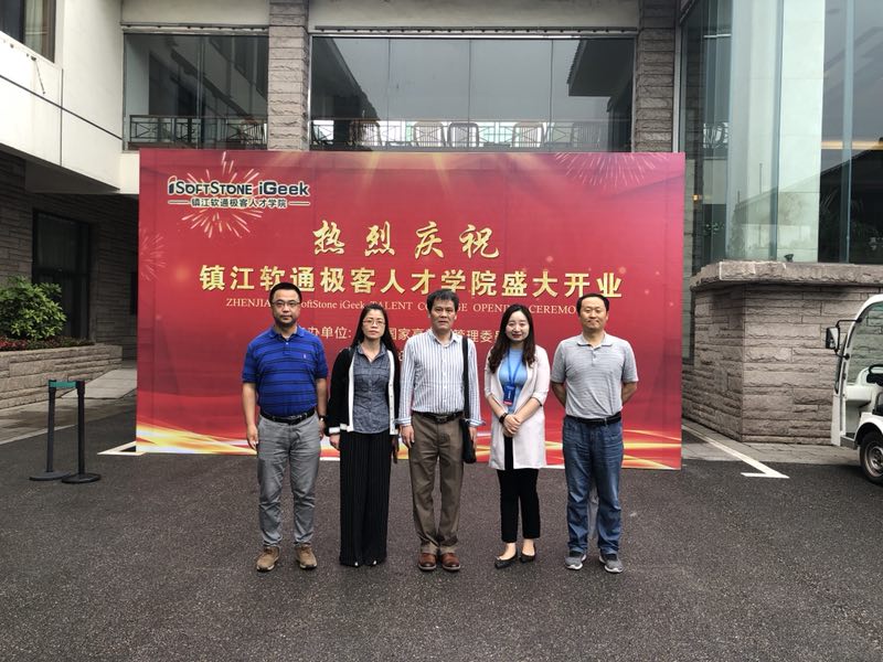 2018年5月26日,澳门pg官方电子平台院长、党总支书记岳忠玉,副院长丁琦,教学秘书曹建波受邀参加了由镇江高新区管理委员会主办的镇江软通极客人才学院启动仪式,参加此次仪式的有副市长、丹阳市委书记陈可可、镇江市委常委、镇江高新区常工委书记詹立风、软通动力集团高副总裁、江苏大区总裁张忠阳、镇江市相关领导以及来自全国50余所院校从事IT领域教学与研究的院长和学者出席会议启动仪式由镇江高新区党工委副书记、管委会主任严竹波主持。