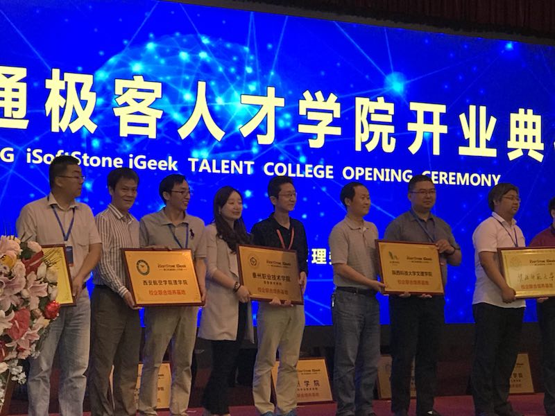 软通极客人才学院是软通动力信息技术(集团)旗下的中高端IT人才培训机构,秉承“合作、共赢、创新、成就”的品牌精神,为镇江软件及服务外包、互联网、人工智能、智慧城市等产业发展提供人才支撑。启动仪式上软通极客人才学院代表上台接受了澳门pg官方电子平台澳门pg官方电子平台、常熟理工学院数学与统计学院、淮阴工学院数澳门pg官方电子平台等37家学院代表的“校企合作培训基地”授牌。